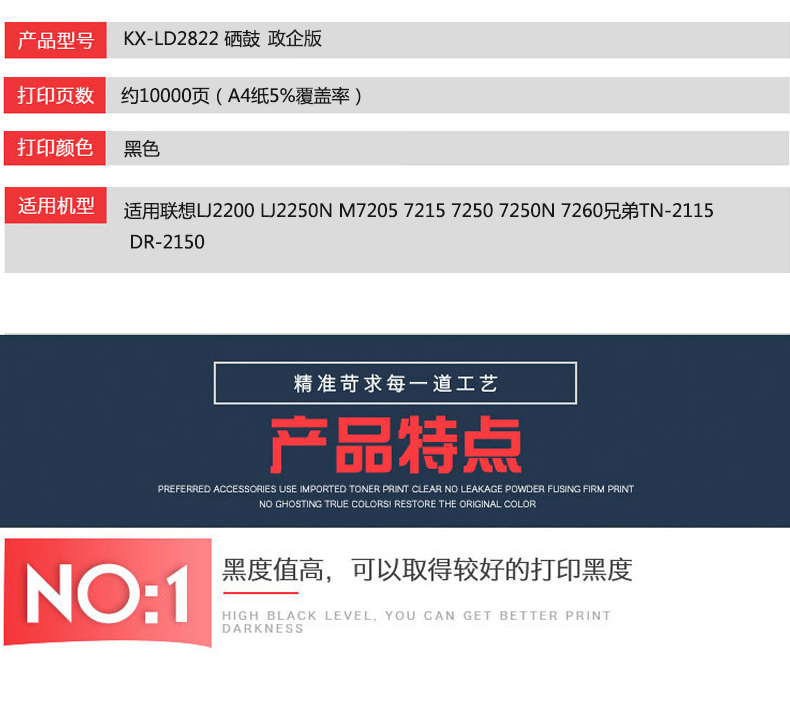 凱欣政企版 KX-LD2822 硒鼓 適用聯(lián)想LJ2200 LJ2250N M7205 7215 7250 7250N 7260兄弟TN-2115 DR-2150 全國(guó)統(tǒng)一價(jià):150元
