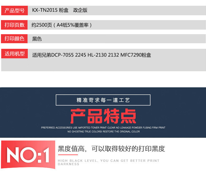 凱欣KX-TN2015 KX-2015粉盒適用兄弟DCP-7055 2245 HL-2130 2132 MFC7290 全國統(tǒng)一價:169元