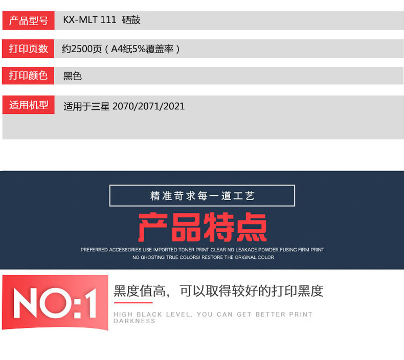 凱欣標(biāo)準(zhǔn)版 KX-MLT111粉盒 適用MLT-D111S M2070 M2021 M2022 M2020碳粉墨盒M2021W M2020W 全國統(tǒng)一價:146元