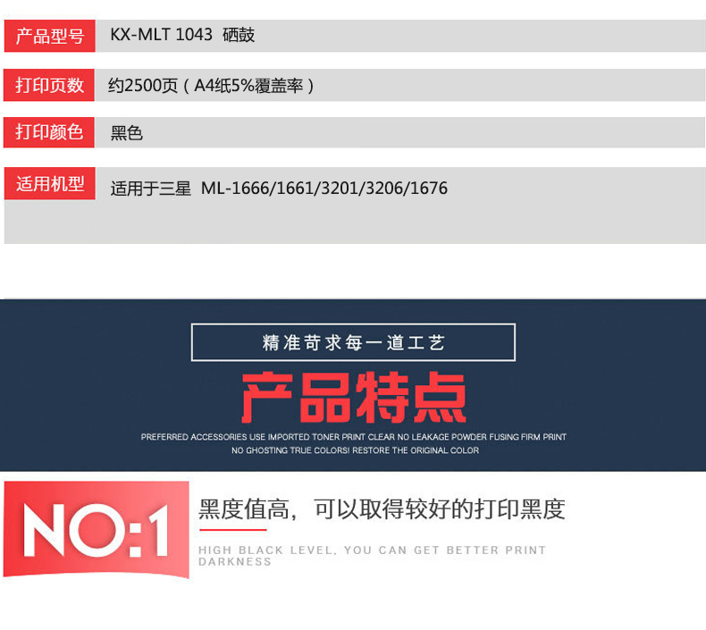凱欣標(biāo)準(zhǔn)版 KX-MLT1043粉盒 適用于三星 ML-1666/1661/3201/3206/1676 全國統(tǒng)一價:160元